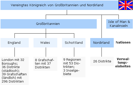 Der folgende Text nennt die zentralen Elemente des Regierungssystems Großbritanniens. Hierzu zählen neben der herausgehobenen Stellung des Premierministers und der nach wie vor vorhandenen Monarchie insbesondere die beiden Verfassungsgrundlagen rule of law und Parlamentssouveränität. Die besondere britische Form des gewaltenverschränkten Parlamentarismus wird häufig als "Westminster-Modell" bezeichnet. Ein weiterer Abschnitt fasst die zentralen Kennzeichen dieses Modells zusammen und nennt die gängigen Kritikpunkte. Großbritannien - oder wie oft verkürzt und falsch gesagt wird: England - wartet mit vielen Besonderheiten auf. Die Probleme beginnen meist schon beim territorialen Aufbau des "Vereinigten Königreichs von Großbritannien und Nordirland" - wie die offizielle Staatsbezeichnung lautet. Das folgende Schaubild veranschaulicht diesen Aufbau: Gemeinsames Staatsoberhaupt des Vereingten Königreichs ist die britische Königin. Die gemeinsame Staatsangehörigkeit ist britisch. Unterhalb dieser Ebene finden wir allerdings mehrere Nationalitäten. Es lassen sich folgende Identitäten unterscheiden: englisch, walisisch, schottisch, irisch, nordirisch (Ulster) und britisch. Das Vereinigte Königreich von Großbritannien und Nordirland, wie der volle Staatsname lautet, ist der einzige europäische Staat ohne eine in einem einzigen Dokument ausformulierte Verfassung. Dies bedeutet aber nicht, dass es keine Quellen gibt, die die heute vorfindbare Staatsform begründen und erläutern. Zu diesen gehören der Bestand an gesetzlichen Vorschriften, überlieferte Konventionen und anerkannte Darstellungen der Verfassungsprinzipien (...). Die Substanz der britischen Verfassung kann auf zwei Prinzipien zurückgeführt werden: die Rule of Law, das heißt, die Gesetzesbindung staatlichen Handelns, und die Parlamentssouveränität. Die Rule of Law schützt die Bürgerinnen und Bürger vor staatlicher Willkür und zwingt das Parlament, der Übertragung von Machtbefugnissen an die Regierung Gesetzesform zu geben. Gesetze können durch eine einfache Mehrheit im Parlament aufgehoben oder verändert werden. Besondere Mehrheiten zur Änderung der Verfassung sind nicht nötig, weil es kein Verfassungsdokument gibt. Die "Verfassungsrealität", wie sie sich im Stand der Gesetzgebung niederschlägt, ist so rasch und flexibel veränderbar . Vereinfacht wird die Praxis der flexiblen Verfassungsfortentwicklung durch die englische Rechtstradition. Sie beruht auf dem Gewohnheitsrecht (common law ). Hauptmerkmal der Common Law-Tradition ist die Orientierung der Rechtsprechung an Präzedenzfällen, also an Musterentscheidungen, auf die zur Entscheidung neuer Streitfälle zurückgegriffen werden kann und die durch die neue Rechtssetzung weiter entwickelt werden können. Ausgangspunkt für Rechtsentscheidungen ist immer der konkrete Fall und nicht eine allgemeine Regel. Es existiert kein Gesetzbuch, wie beispielsweise das deutsche BGB. Dies gibt der Gesetzesauslegung und damit auch der Verfassungsinterpretation, sofern sie auf Gesetzen beruht, ein hohes Maß an Flexibilität (...). Die Anpassung der Gesetze und Institutionen des Landes über die Jahrhunderte hinweg war dank der englischen Rechts- und Verfassungstraditionen ohne größere äußerliche Veränderungen möglich. Der verbreitete Eindruck, Großbritannien sei ein Land, das seinen historischen Traditionen in besonderem Maße verbunden ist, beruht oft auf der oberflächlichen Beobachtung dieser formalen Kontinuität. Die Rolle der Monarchie in der britischen Politik oder die des Parlamentes, um nur zwei wichtige Beispiele zu nennen, hat sich aber trotz dieser Kontinuität in den letzten vier Jahrhunderten dramatisch verändert. Der zweite Grundpfeiler der britischen Verfassung, neben der Bindung staatlichen Handelns an Gesetze, ist die Parlamentssouveränität. Das Parlament verabschiedet die Gesetze und kontrolliert alleine die Gesetzgebung, ist dabei selbst aber nicht an einen übergeordneten Verfassungstext gebunden. Das Parlament, nicht das Volk ist der Verfassungsgeber .Ein Verfassungsgericht, das Parlamentsentscheidungen revidieren könnte, existiert nicht und ist ohne ein Verfassungsdokument nicht denkbar. [Seitenanfang] [zurück zur Übersicht] Verfassungen demokratischer Staaten legen in der Regel fest, dass die Staatsgewalt vom Volk ausgeht, dass also das Volk souverän ist. Wie ist die britische Besonderheit der Parlamentssouveränität zu erklären, und welche praktische Bedeutung hat sie heute? Errungen wurde die Parlamentssouveränität in der Glorious Revolution der Jahre 1688/89. Sie markierte den Endpunkt des Konfliktes zwischen dem katholischen Herrscherhaus der Stuarts und dem protestantischen Parlament. Die Zustimmung zur Absetzung der Stuarts und zur nachfolgenden Thronbesteigung des Protestanten Wilhelm III. von Oranien und seiner Frau Maria wurde vom Parlament mit einer Reihe verfassungsrechtlicher Auflagen zu seinen Gunsten verbunden. Dieser Freiheitskatalog, die Bill of Rights von 1689, der die absolutistische Herrschaft in Großbritannien beendete und die konstitutionelle Monarchie begründete, gibt die Freiheitsrechte (freie Wahl, freies Rederecht, Steuerrecht) dem Parlament. Zwar wurde im 19. und 20. Jahrhundert das allgemeine, gleiche, freie und geheime Wahlrecht aufgrund der politischen Forderungen des aufstrebenden Bürgertums, der Arbeiterschaft und der Frauenrechtsbewegung (Suffragetten) von der Liberalen Partei bzw. ihrer Vorläuferpartei, den Whigs, durchgesetzt. An der verfassungsmäßigen Stellung des Parlamentes änderte sich aber nichts. Formal blieben die britischen Bürger Untertanen der Königin und wurden nie Träger der Staatsgewalt. In Großbritannien gab es, anders als in Kontinentaleuropa, keine bürgerlichen oder sozialen Revolutionen oder Umstürze, die die Monarchie beseitigt hätten oder doch zumindest der Volkssouveränität in einem Verfassungsdokument Verfassungsrang erkämpft hätten (...). [Seitenanf