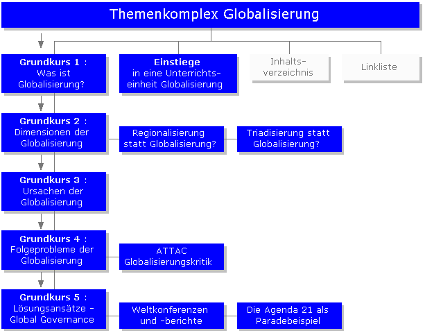 Der Themenkomplex Globalisierung im Überblick Durch Klicken auf die Kästen gelangen Sie direkt zur entsprechenden Seite. Ein schriftliches Inhaltsverzeichnis finden Sie auf der Seite Inhalt