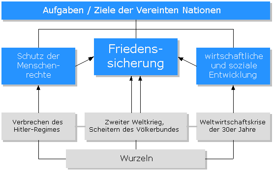 Die Hauptaufgaben der Vereinten Nationen lassen sich in drei Bereiche